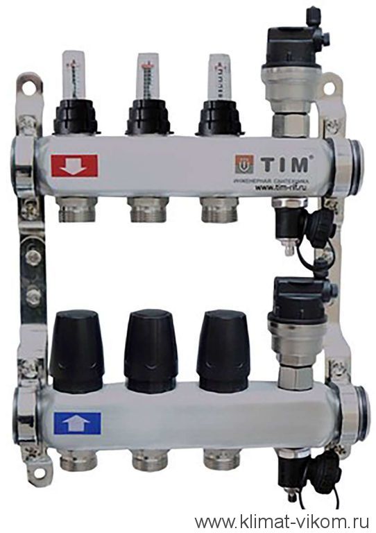 Коллектор TIM гр. с расх. 4 х. нерж.квадрат